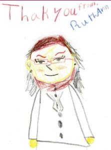 Seven-year old RuthAnn was having difficulty reading and paying attention in school. When she visited Vision Specialists of Michigan, she was asked to draw a picture of her doctor prior to her exam (image on left). After RuthAnn received her new specialized aligning lenses, she drew the picture on the right of her doctor.